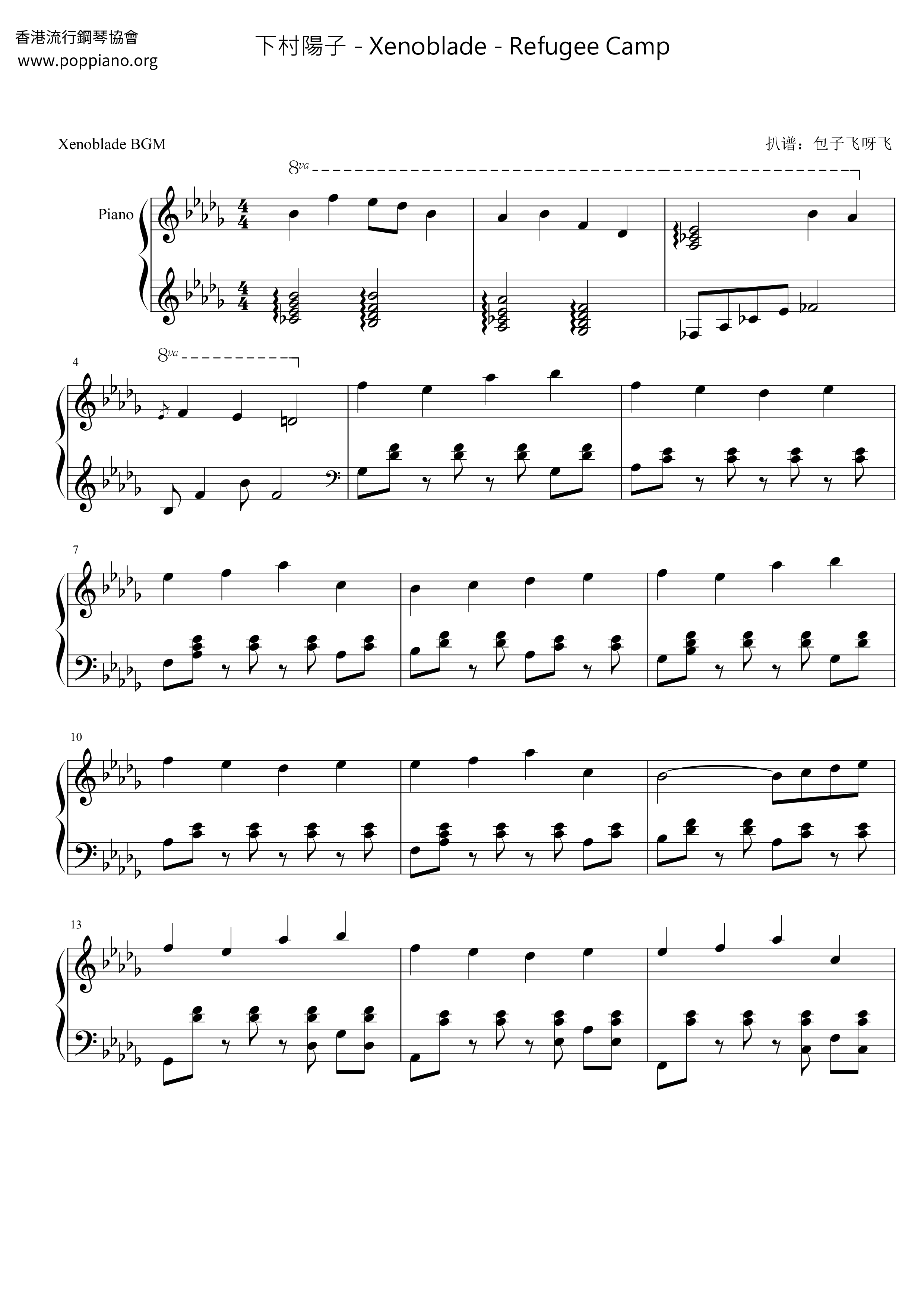 Yoko Shimomura Xenoblade Refugee Camp Sheet Music Pdf 下村 陽子 Free Score Download